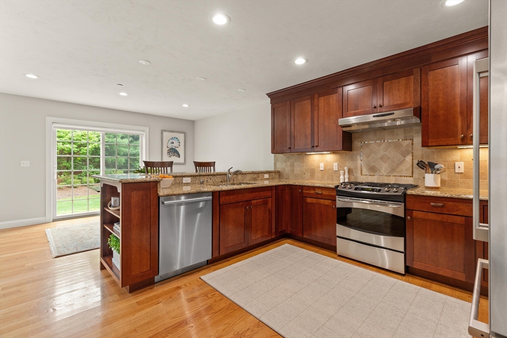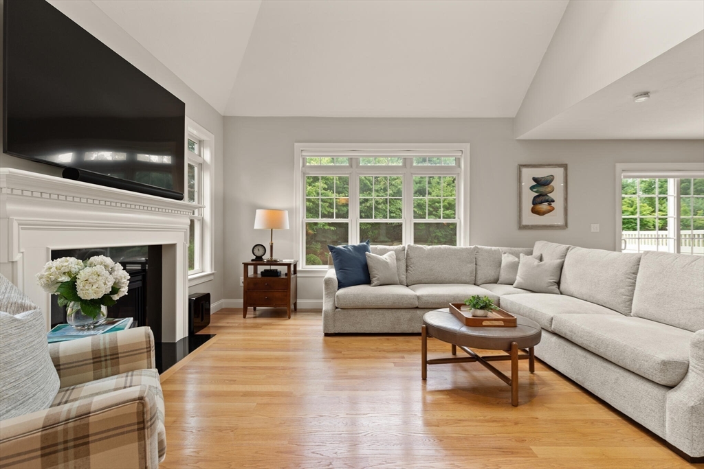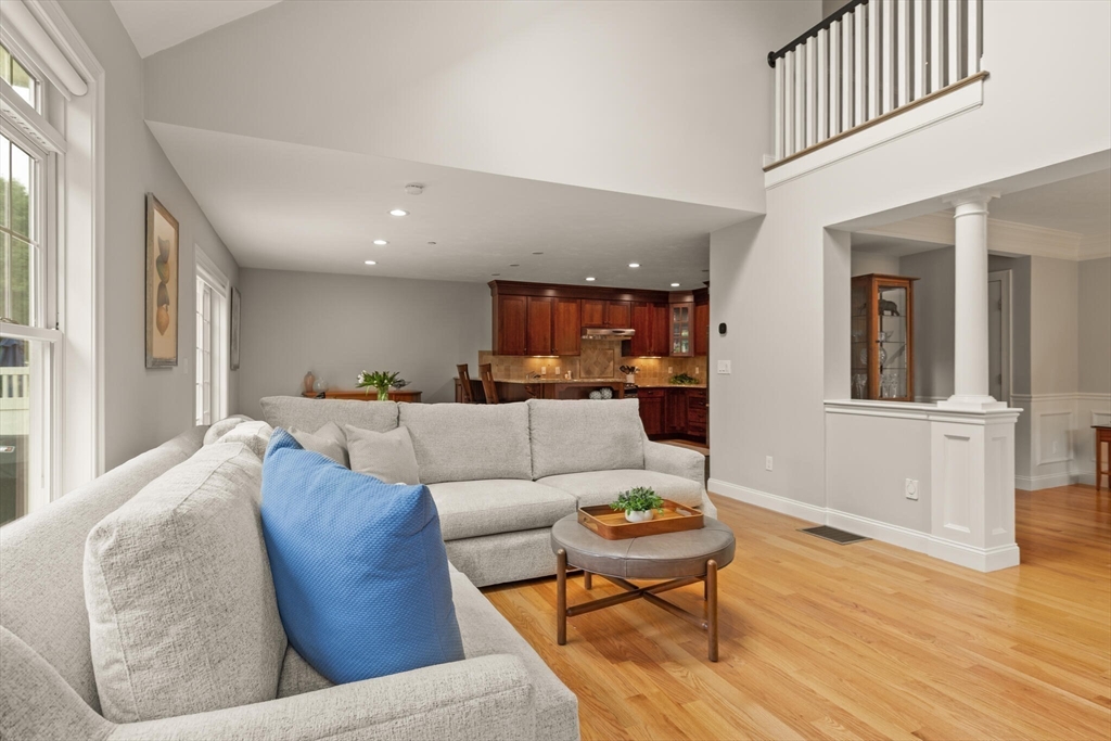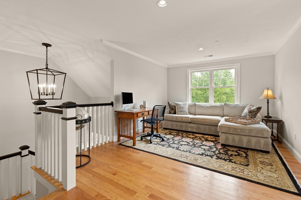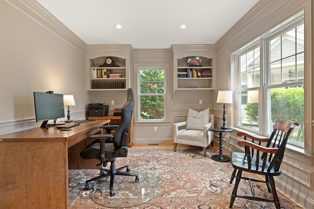 Offer deadline set for 8/26 at 5pm. Beautiful Landham Crossing end unit! Sudbury's finest 2 bedroom, 2 1/2 bath luxury townhome. Customized with gorgeous millwork, tall ceilings, and solid oak flooring. Recently updated with new lighting, paint, appliances and window treatments. At the heart of the home is the sunny living room with gas fireplace and soaring ceiling which opens to a separate dining room with windows and stunning millwork. The oversized kitchen offers granite counters and cherry cabinets with a breakfast nook facing the private back patio. The large 1st floor office has french doors and custom built-ins. Upstairs, the spacious primary suite w/ walk in closet and ensuite bath with glass shower & dual sinks. Off the loft living room, discover a 2nd large bedroom, full bath and laundry room. The basement is pre-plumbed for expansion. Attached 2-car garage off of mud room.