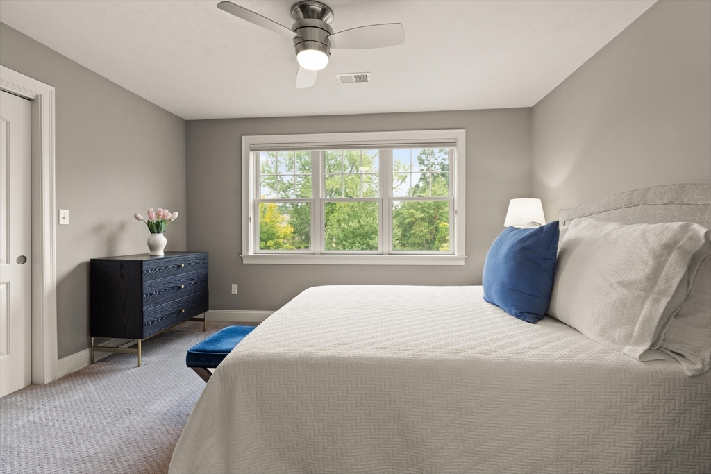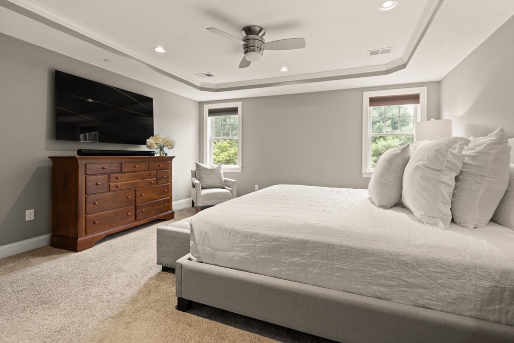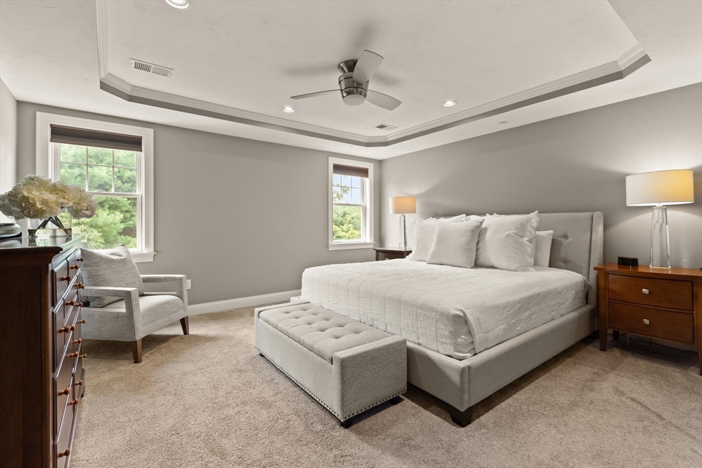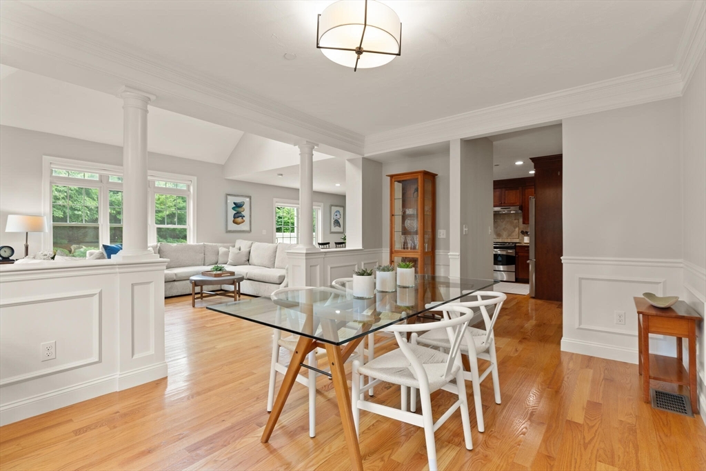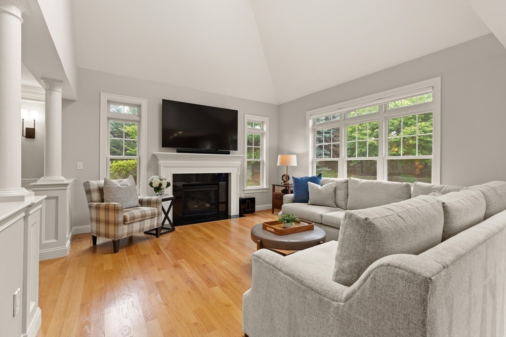 Offer deadline set for 8/26 at 5pm. Beautiful Landham Crossing end unit! Sudbury's finest 2 bedroom, 2 1/2 bath luxury townhome. Customized with gorgeous millwork, tall ceilings, and solid oak flooring. Recently updated with new lighting, paint, appliances and window treatments. At the heart of the home is the sunny living room with gas fireplace and soaring ceiling which opens to a separate dining room with windows and stunning millwork. The oversized kitchen offers granite counters and cherry cabinets with a breakfast nook facing the private back patio. The large 1st floor office has french doors and custom built-ins. Upstairs, the spacious primary suite w/ walk in closet and ensuite bath with glass shower & dual sinks. Off the loft living room, discover a 2nd large bedroom, full bath and laundry room. The basement is pre-plumbed for expansion. Attached 2-car garage off of mud room.