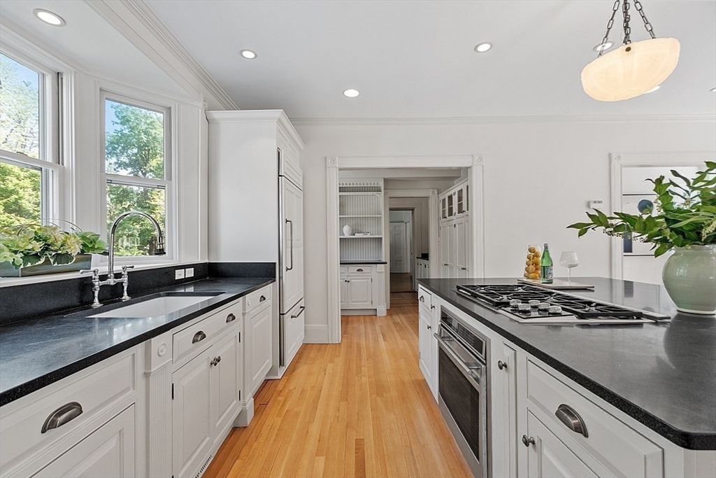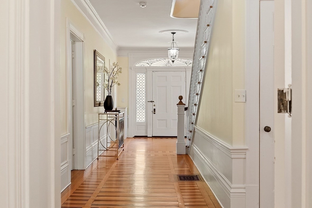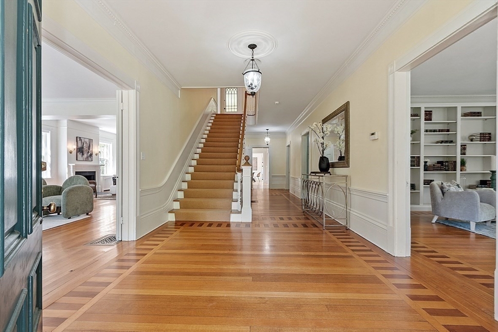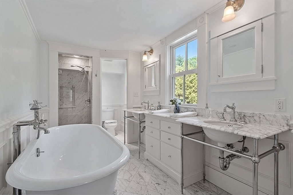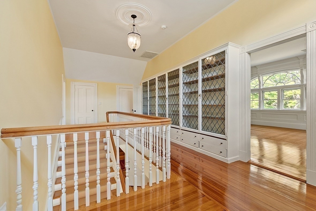 A perfect balance of landmark elegance, timeless character and everyday modern comfort on 2+ acres. Welcome to the Augustus P. Chamberlaine House. This property offers 3 levels of living space complemented by a detached 3-car carriage house w/fully equipped 1BR apt., perfect for guests, au-pair or rental income. Rich details include Tuscan columns, mahogany inlaid floors, gas and woodburning fireplaces, hand-carved mantels, custom moldings, 5-foot windows and more. Updated custom kitchen w/center island features 2 pantries and opens effortlessly to the family room with gas fireplace and window seat built-ins. Gather formally in the elegant dining room, library and the living room w/elaborate moldings and dual fireplaces. 2nd level finds 4BRs including luxe primary suite w/marble bath and private sitting area. 3rd level finds bedrooms 5 and 6 plus a spacious billiard room. Moments from Town Center and commuting routes this historic property offers space, style and flexibility.