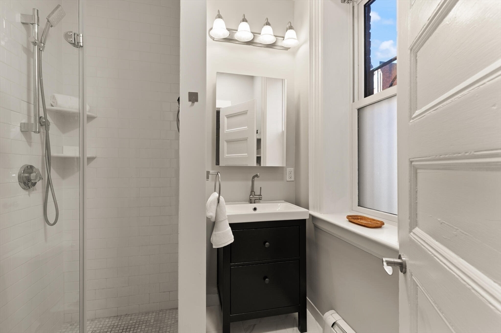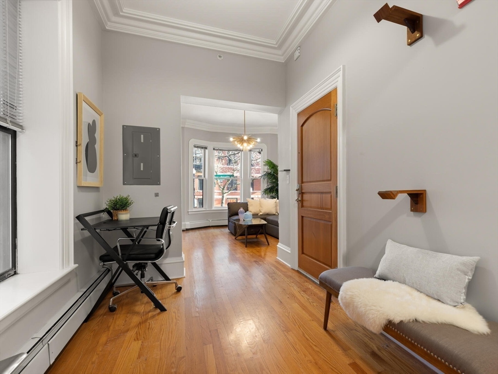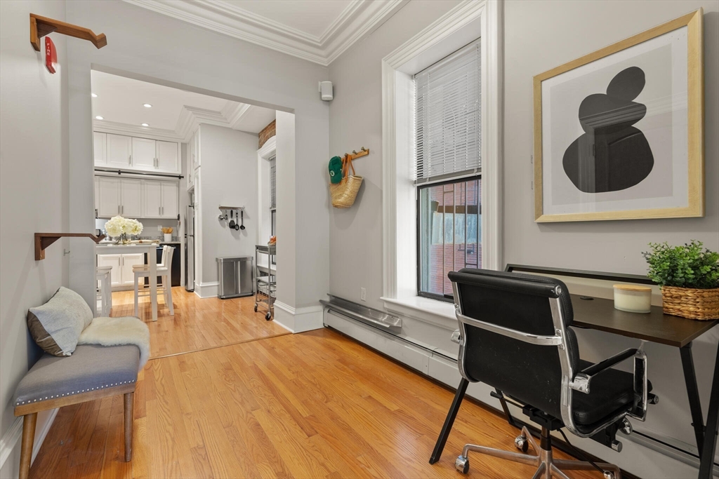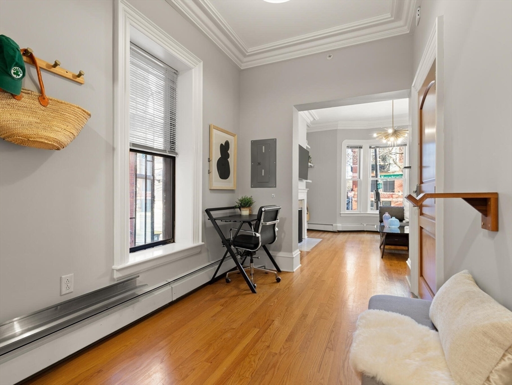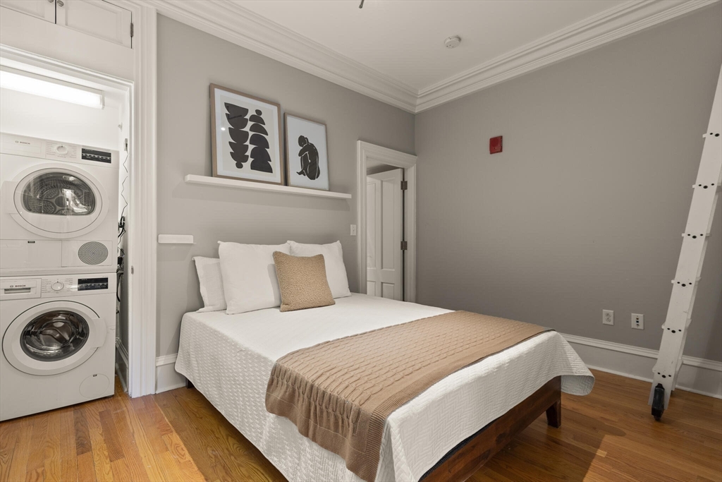 OPEN HOUSE 2/8 CANCELLED - OFFER ACCEPTED. Warmth and character of a classic Back Bay historic residence combined with the ease of a renovated, modern infrastructure building with new heating, plumbing, and electrical systems in 2016. This perfect Back Bay corner unit is between Beacon & Marlborough Streets and features 10' ceilings, solid oak floors, brick walls, and giant windows on two sides! The large living room showcases a huge bay window. The white kitchen has stainless appliances and granite countertops. In-unit washer/dryer! Gorgeous crown moldings and lighting abound. The spacious bedroom offers tons of custom closet storage. Front facing and set well above Mass Ave. Just painted and feels brand new! Walk to everywhere in Back Bay & Kenmore. Only a block to the Esplanade and Charles River. Two blocks to the MBTA Green line subway and #1 bus to Harvard. Mass Pike and Storrow Drive offer easy driving access. Professionally managed.