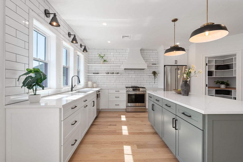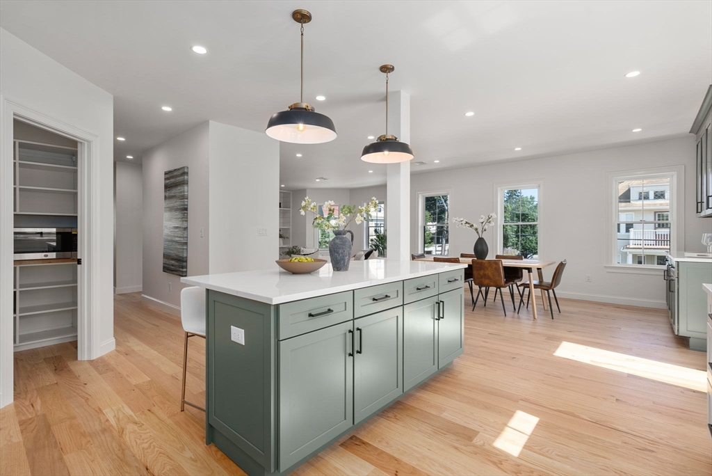Vibrant Medford, this has it all! A few blocks to the new Green Line College Ave Station & Cummings Center! Windows galore light up this open plan 2nd floor unit. The living room with fireplace & built in's opens to dining with coffee/wine station, high-end kitchen with large island, quartz counters, stainless appliances, pantry & access to a large deck for outside dining, a large home office that could double as a guest room, mudroom & 1/2 bath. The 3rd level offers a primary suite with walk-in closet, bath, an additional 2 bedrooms with bath & laundry. Hardwood floors throughout, all new plumbing, electric, windows, 2 zone heat/ca, custom closets, storage shed & parking. All this with a great neighborhood feel of La Cascia's Bakery, Bob's Italian Foods or the trendy shops & waterfront restaurants of Assembly Row, Medford Sq's restaurants & Theatre, Harvard or Davis Sq's, Tufts University & access to Downtown Boston & Logan Airport.**OH Thurs July 25, 5-6:30pm, Sun July 28, 1-2:30pm