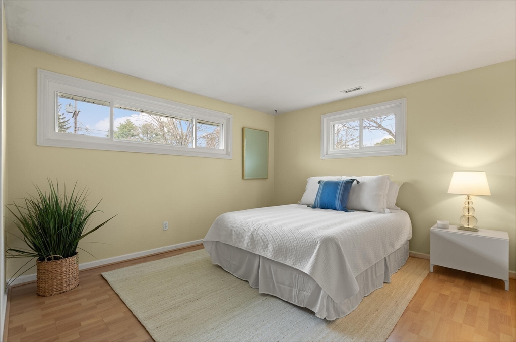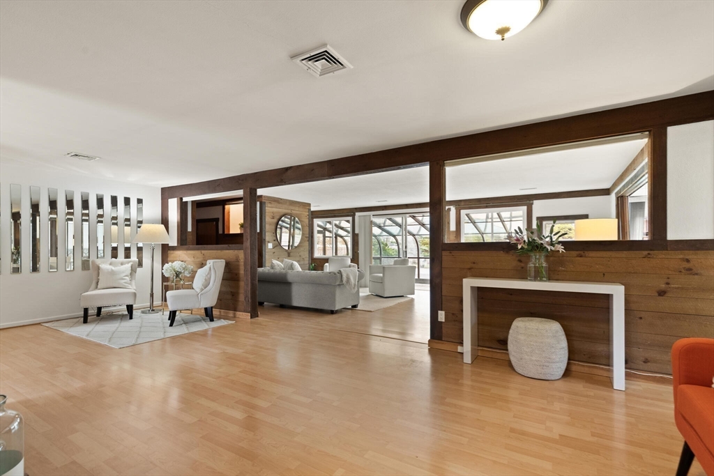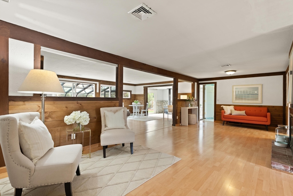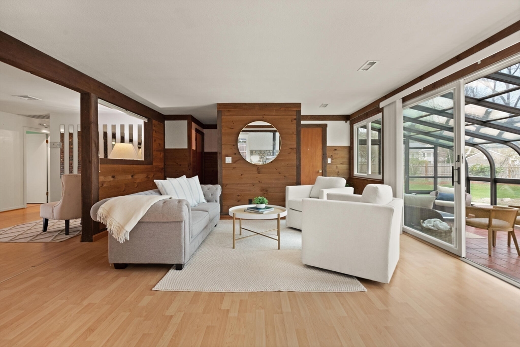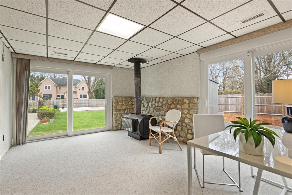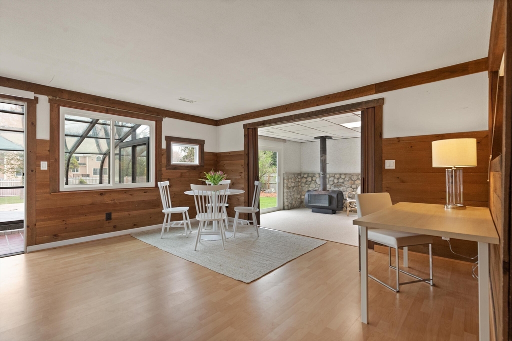 Fabulous, large, one story ranch home in a quintessential family neighborhood with a spectacular backyard. This home boasts a huge combined living room + great room plus an adjoining three season sunroom awash in light galore. These living spaces compliment three bedrooms plus an in-home office (with wood burning stove.) Separate kitchen and formal dining areas for large gatherings.The backyard offers a summer long "staycation." A half acre of level, landscaped, fenced yard with in-ground pool. Pool has not been used or opened for the past three years, so is being offered as-is. Your family and friends will delight with this outdoor haven. Walk to Harrington Elementary and easily commute via Rte 3, 128 or Rte 2 to Boston or Burlington. Come explore this rare offering. Open Houses on Friday, 4-6p, Sat and Sun: 12-2p or arrange for a private showing.